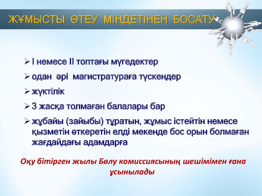 ЖҰМЫСТЫ ӨТЕУ МІНДЕТІНЕН БОСАТУI немесе II топтағы мүгедектер