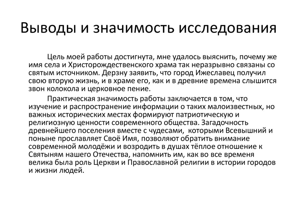 Выводы и значимость исследованияЦель моей работы достигнута, мне удалось выяснить, почему же