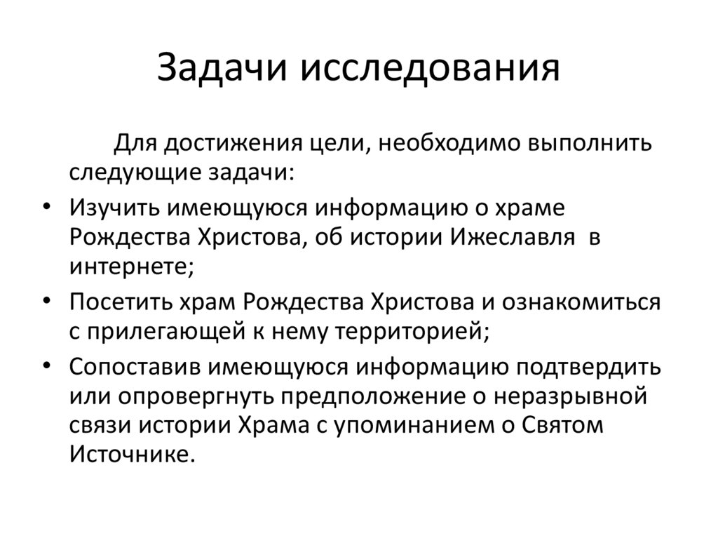 Задачи исследованияДля достижения цели, необходимо выполнить