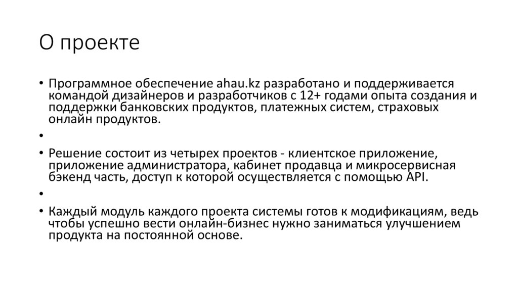 О проекте• Программное обеспечение ahau.kz разработано и поддерживается