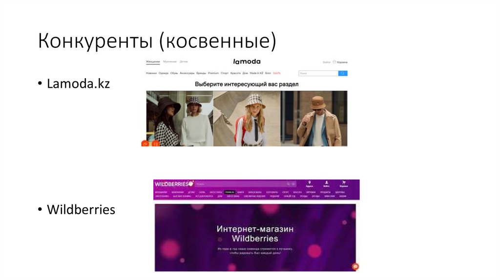 Конкуренты (косвенные)• Lamoda.kz