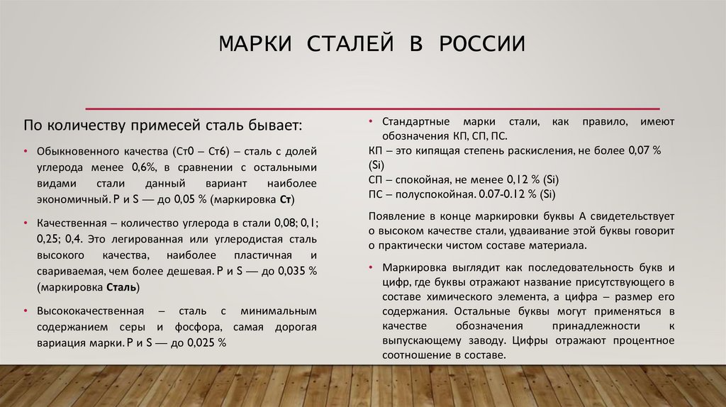МАРКИ СТАЛЕЙ В РОССИИПо количеству примесей сталь бывает: