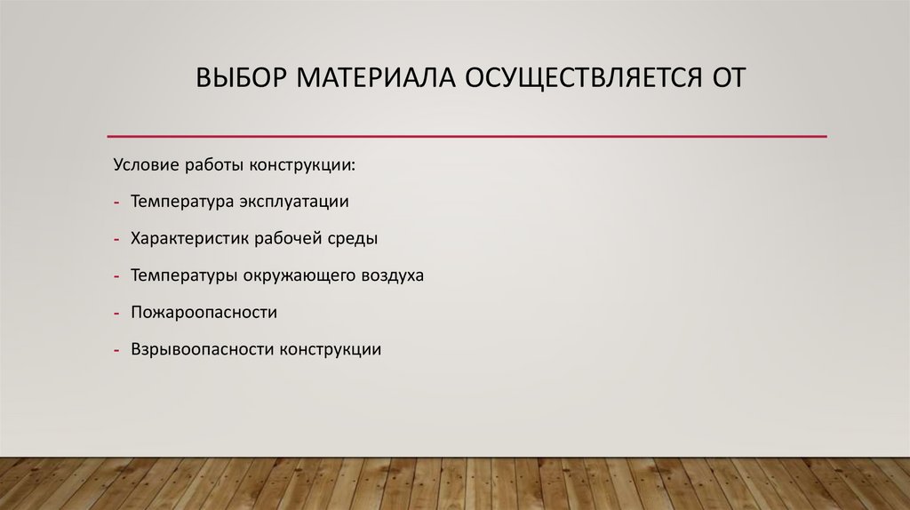 ВЫБОР МАТЕРИАЛА ОСУЩЕСТВЛЯЕТСЯ ОТУсловие работы конструкции: