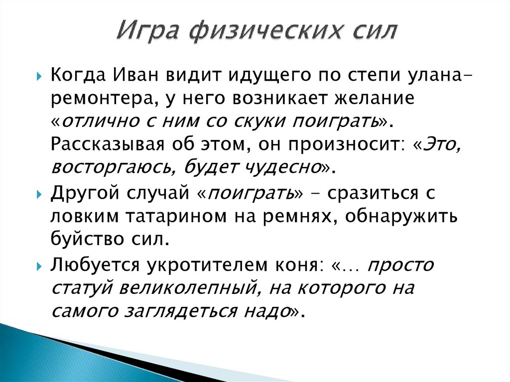 Когда Иван видит идущего по степи уланаремонтера, у него возникает желание«отлично с ним со скуки поиграть».