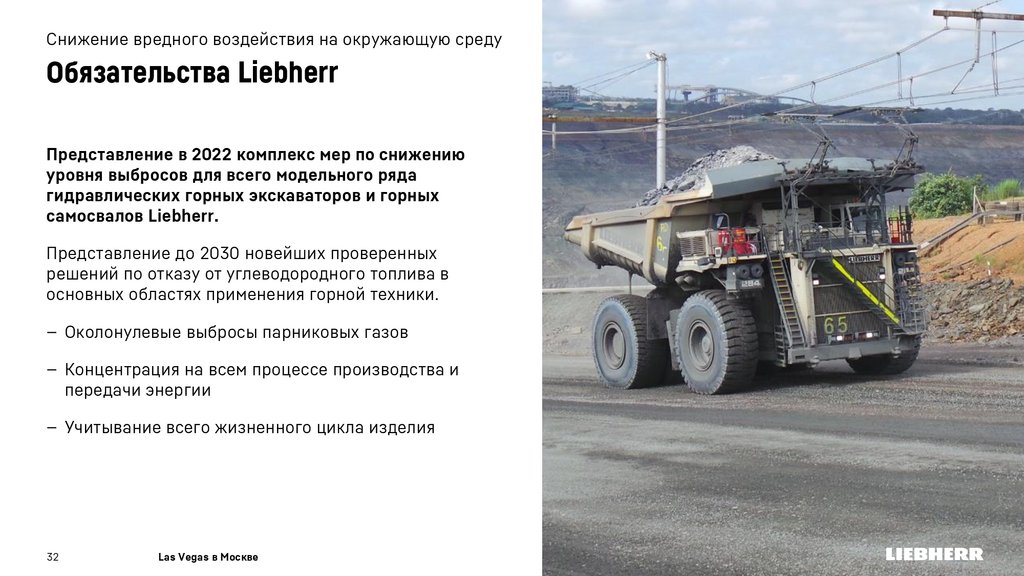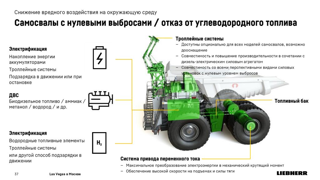 Снижение вредного воздействия на окружающую средуСамосвалы с нулевыми выбросами / отказ от углеводородного топлива
