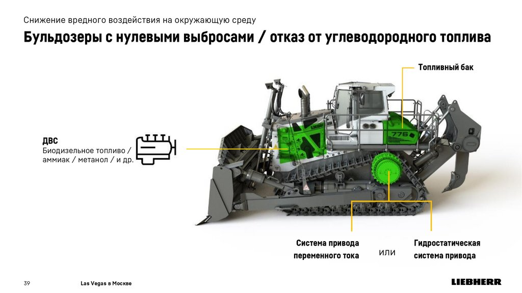 Снижение вредного воздействия на окружающую средуБульдозеры с нулевыми выбросами / отказ от углеводородного топлива