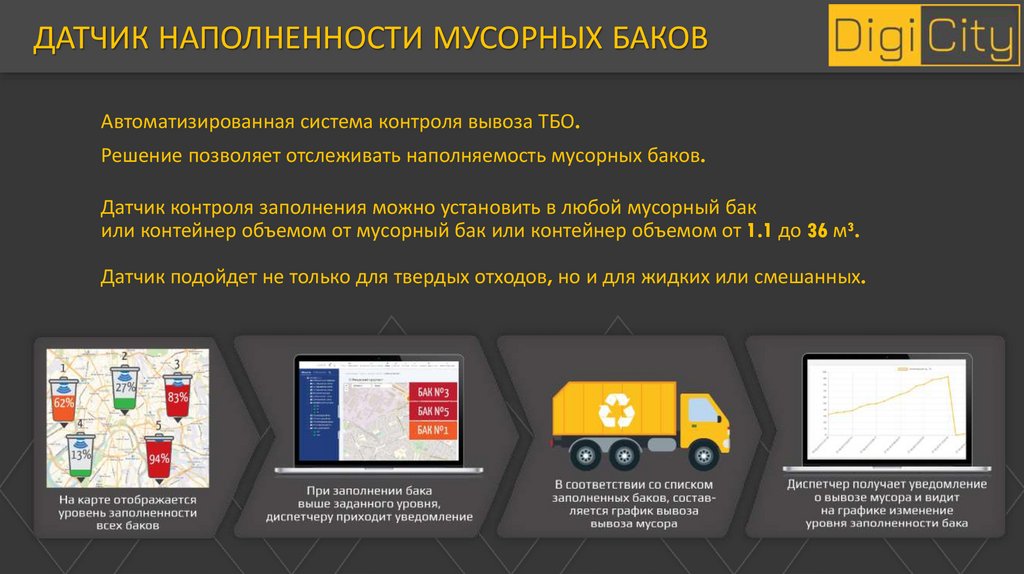 ДАТЧИК НАПОЛНЕННОСТИ МУСОРНЫХ БАКОВАвтоматизированная система контроля вывоза ТБО.