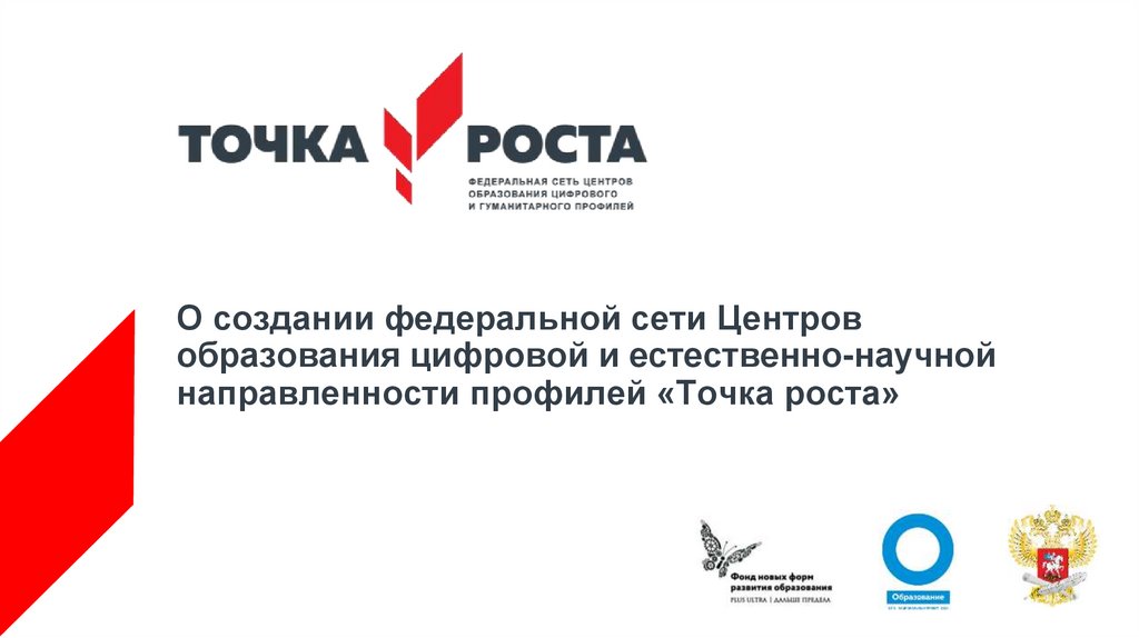 Задачи Центров «Точка роста»• СОЗДАНИЕ УСЛОВИЙ ДЛЯ ВНЕДРЕНИЯ на уровнях начального общего,