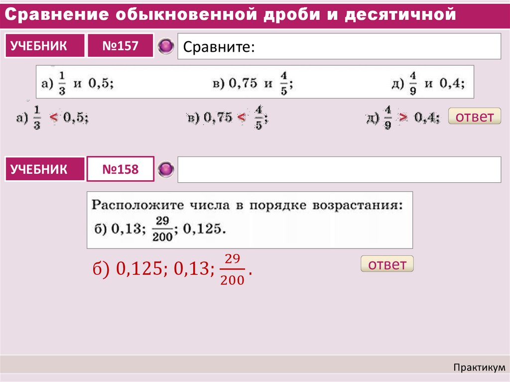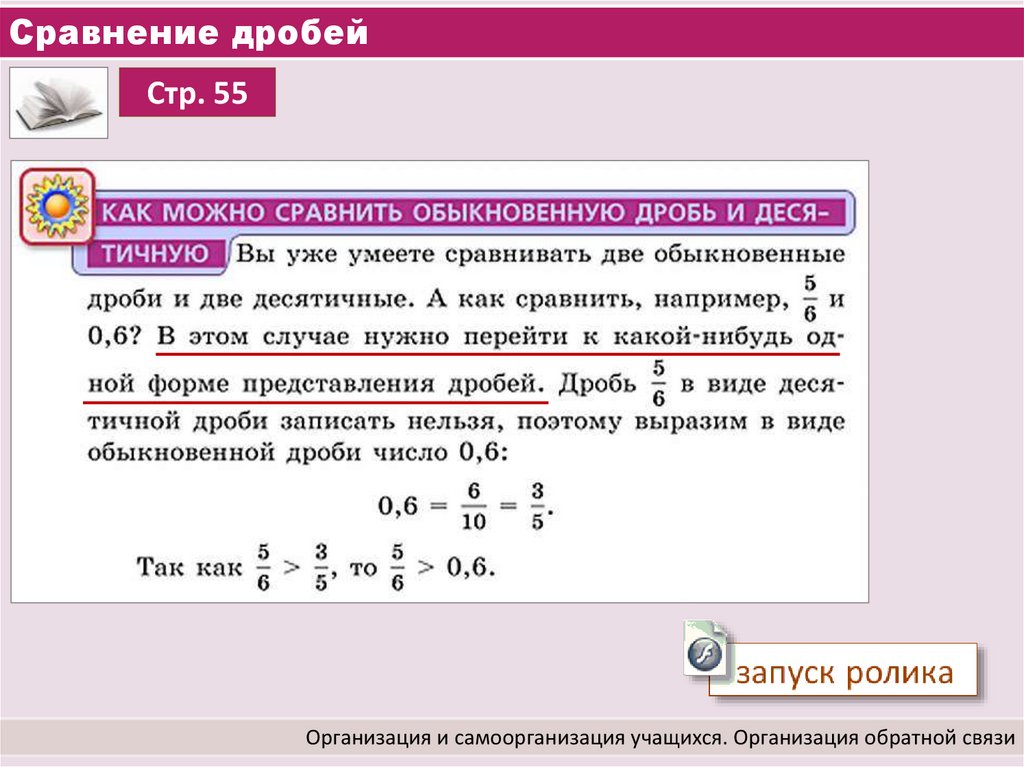 СРАВНЕНИЕ ОБЫКНОВЕННОЙ ДРОБИ И