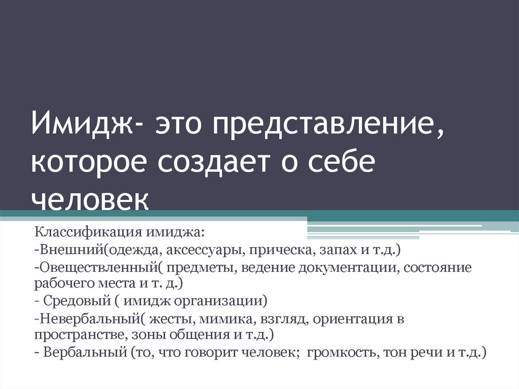 -Внешний(одежда, аксессуары, прическа, запах и т.д.)