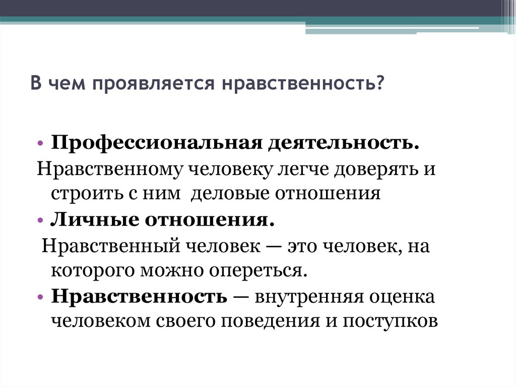 В чем проявляется нравственность?• Профессиональная деятельность.