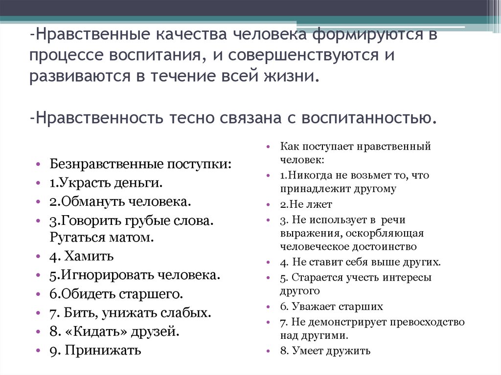 -Нравственные качества человека формируются впроцессе воспитания, и совершенствуются и