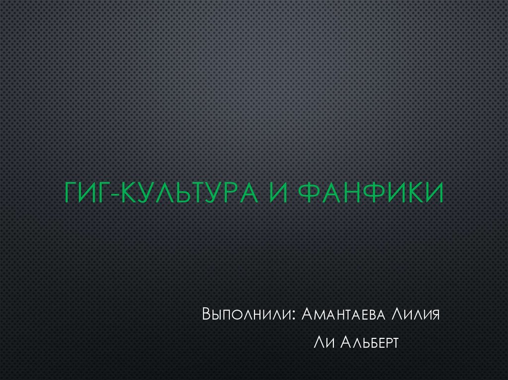 ГИГ-КУЛЬТУРА И ФАНФИКИВЫПОЛНИЛИ: АМАНТАЕВА ЛИЛИЯ