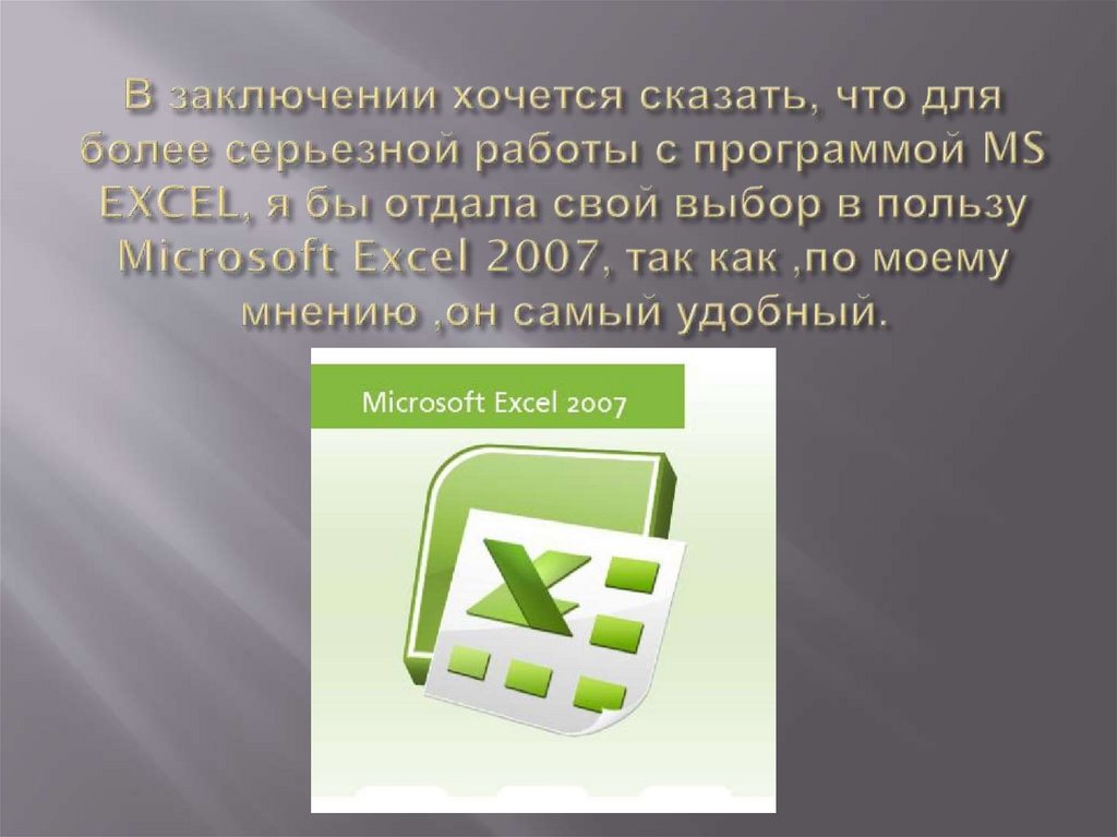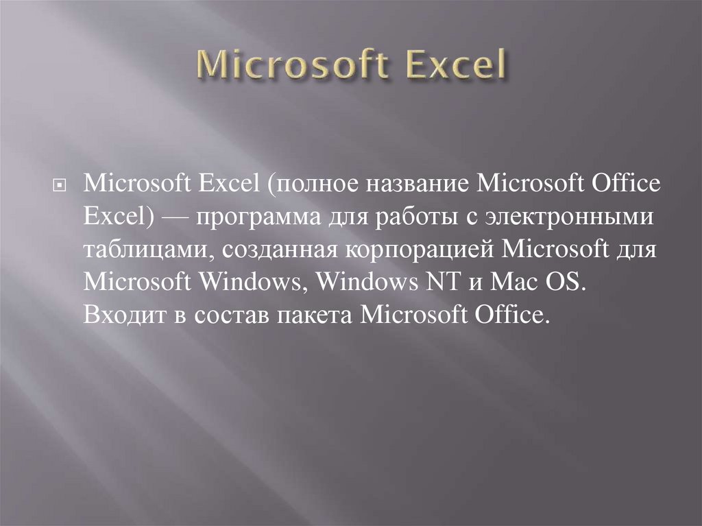 Microsoft Excel (полное название Microsoft OfficeExcel) — программа для работы с электронными