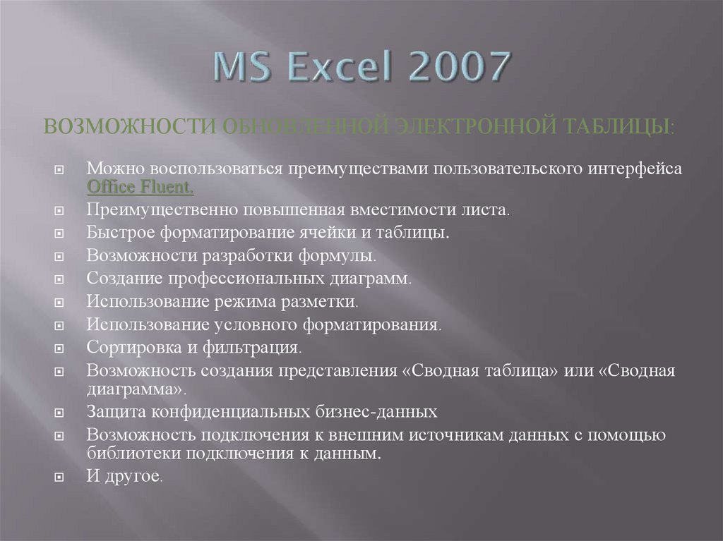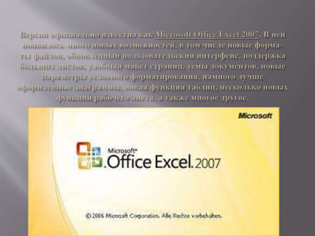 Microsoft Excel 2010Новейшие возможности программы: