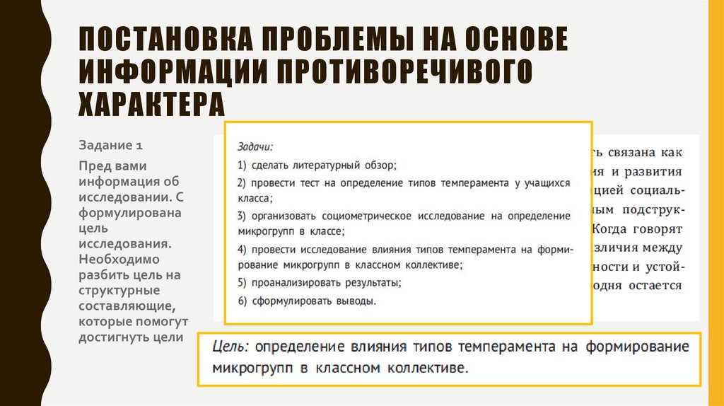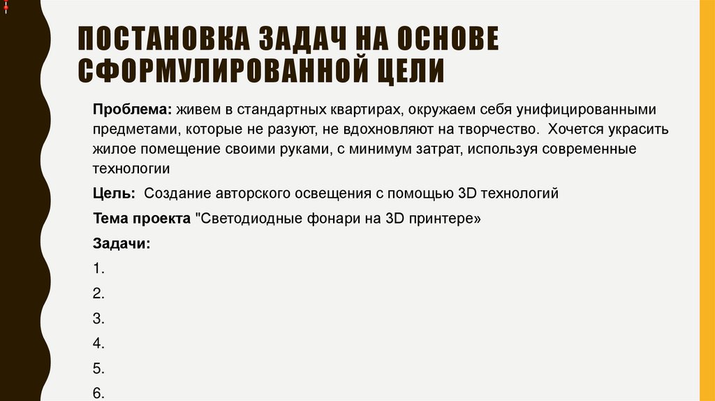 ПОСТАНОВКА ЗАДАЧ НА ОСНОВЕСФОРМУЛИРОВАННОЙ ЦЕЛИ