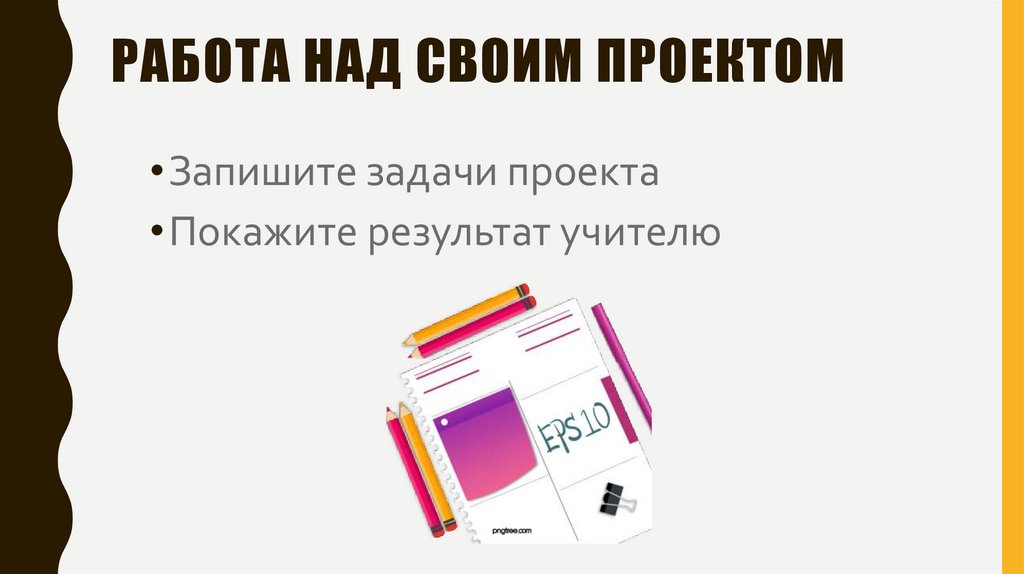 РАБОТА НАД СВОИМ ПРОЕКТОМ•Запишите задачи проекта