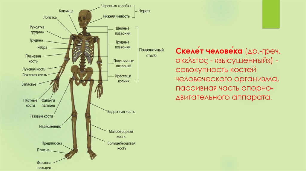 Скеле́т челове́ка (др.-греч.σκελετος - «высушенный») совокупность костей