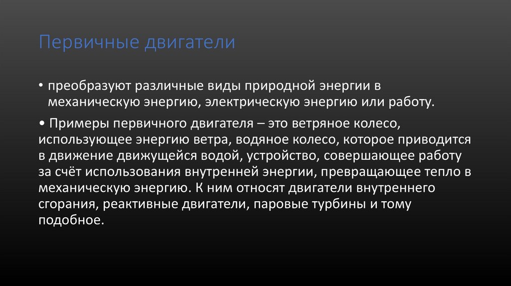 Первичные двигатели• преобразуют различные виды природной энергии в