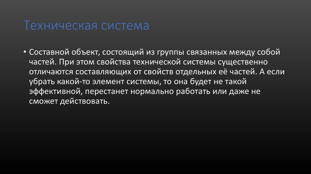 Техническая система• Составной объект, состоящий из группы связанных между собой