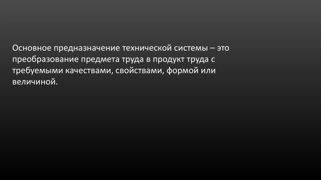 Основное предназначение технической системы – этопреобразование предмета труда в продукт труда с