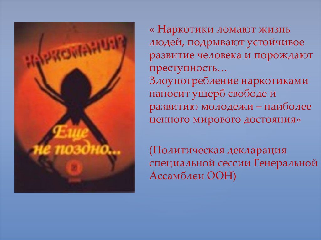 « Наркотики ломают жизньлюдей, подрывают устойчивое