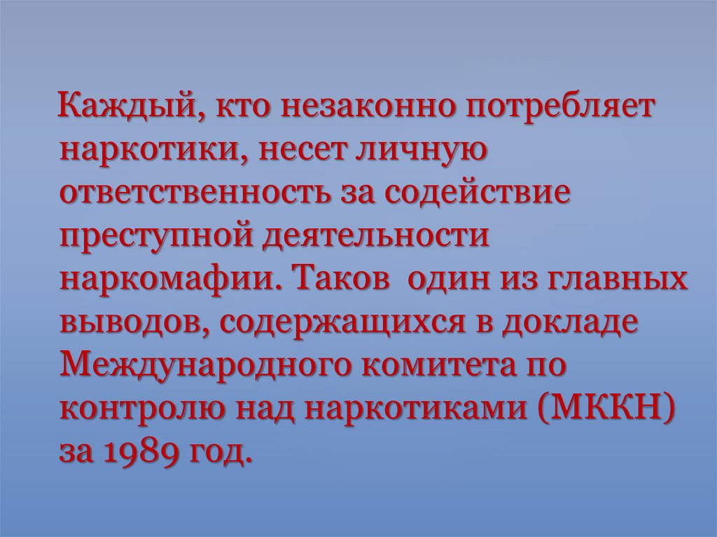 Каждый, кто незаконно потребляетнаркотики, несет личную
