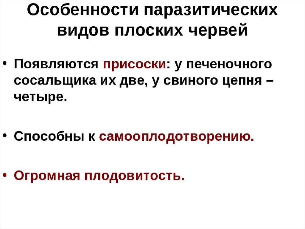Разнообразие плоских червей: класс сосальщики, класс ленточные черви