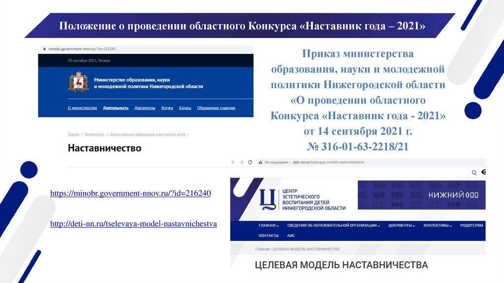 Положение о проведении областного Конкурса «Наставник года – 2021»Приказ министерства