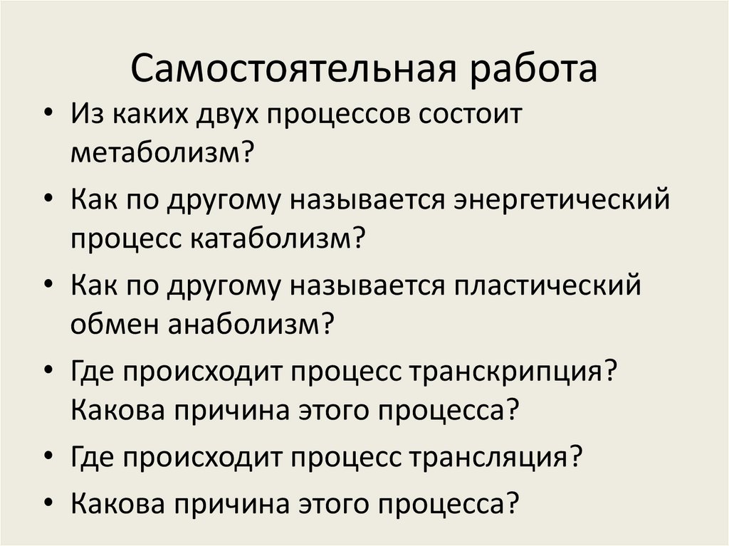 Самостоятельная работа• Из каких двух процессов состоит