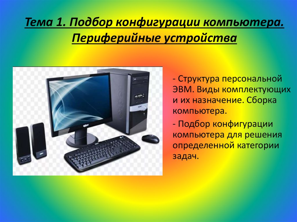 Тема 1. Подбор конфигурации компьютера.Периферийные устройства