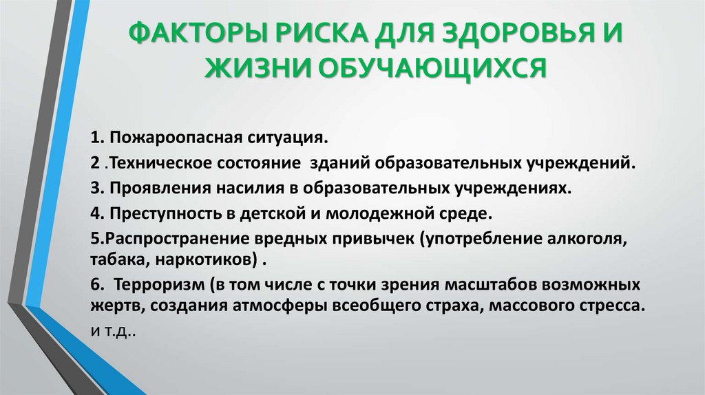 ФАКТОРЫ РИСКА ДЛЯ ЗДОРОВЬЯ ИЖИЗНИ ОБУЧАЮЩИХСЯ