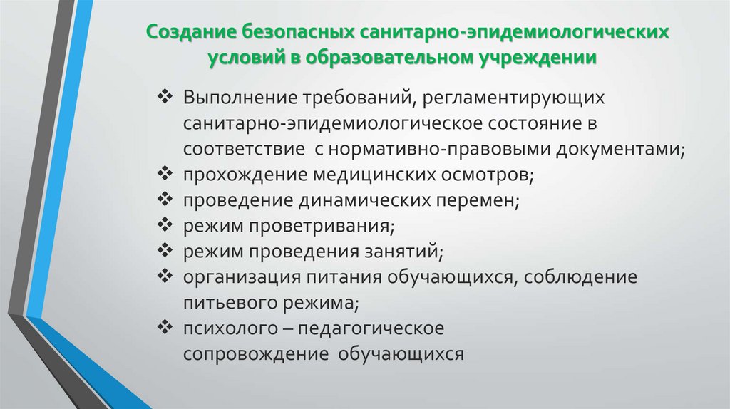 Создание безопасных санитарно-эпидемиологическихусловий в образовательном учреждении