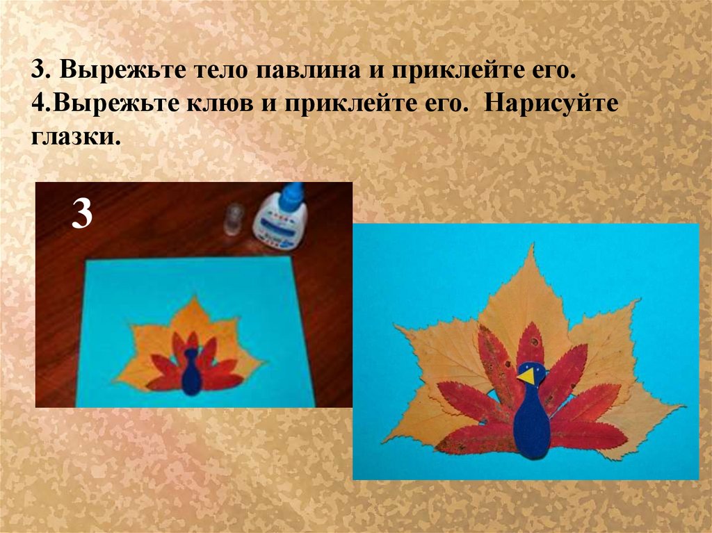 3. Вырежьте тело павлина и приклейте его.