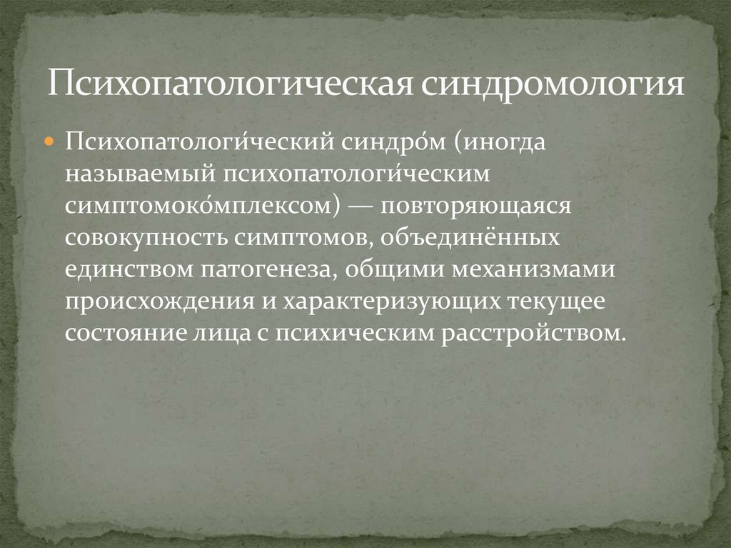 Психопатологи́ческий синдро́м (иногданазываемый психопатологи́ческим