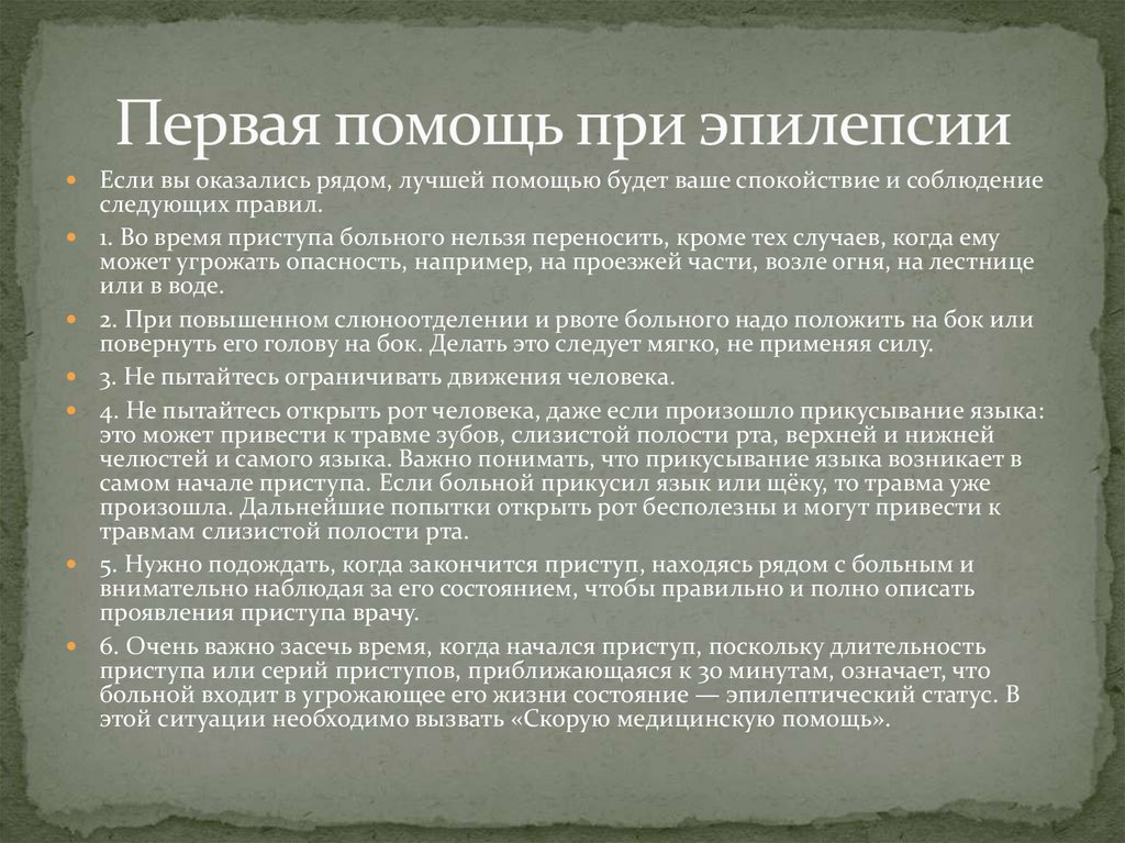самом начале приступа. Если больной прикусил язык или щёку, то травма уже