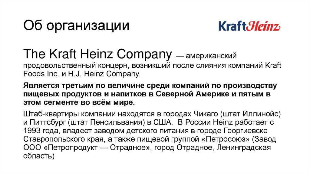 Об организацииThe Kraft Heinz Company — американский
