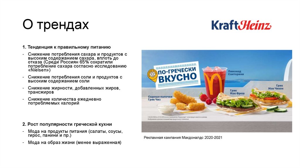 - Мода на продукты питания (салаты, соусы,