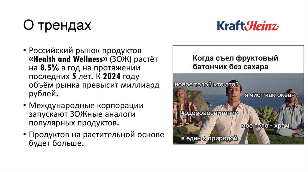 О трендах• Российский рынок продуктов