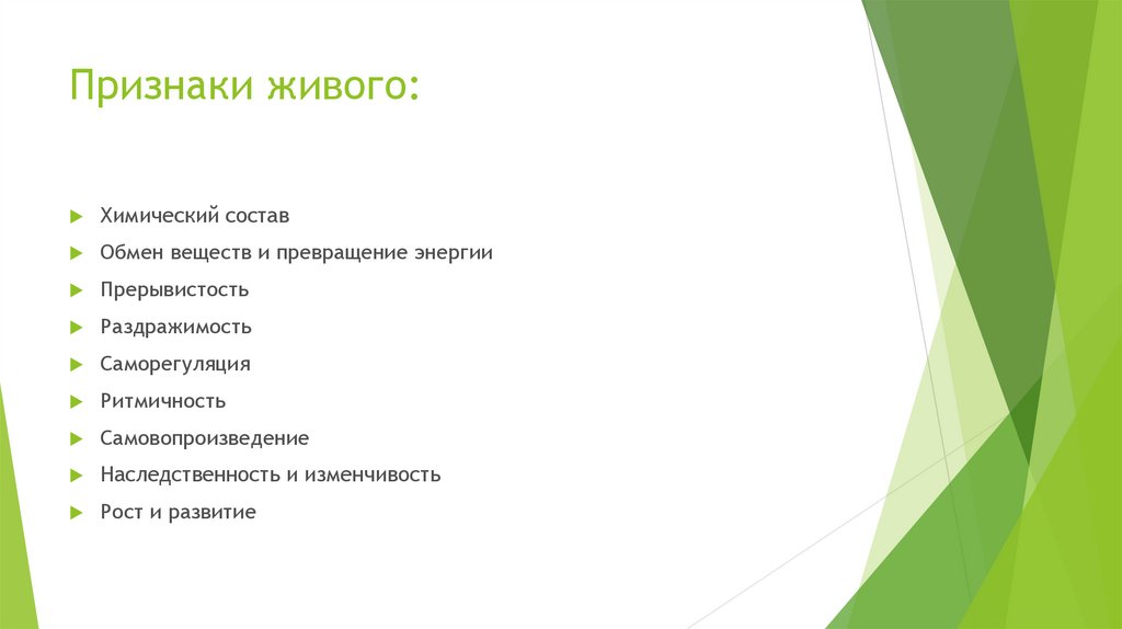 Признаки живого:Химический состав