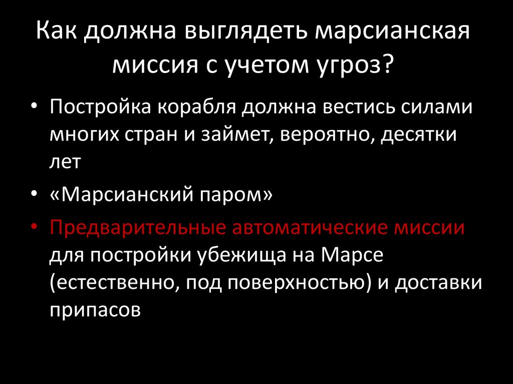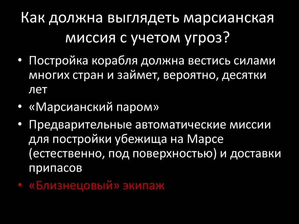 Как должна выглядеть марсианскаямиссия с учетом угроз?