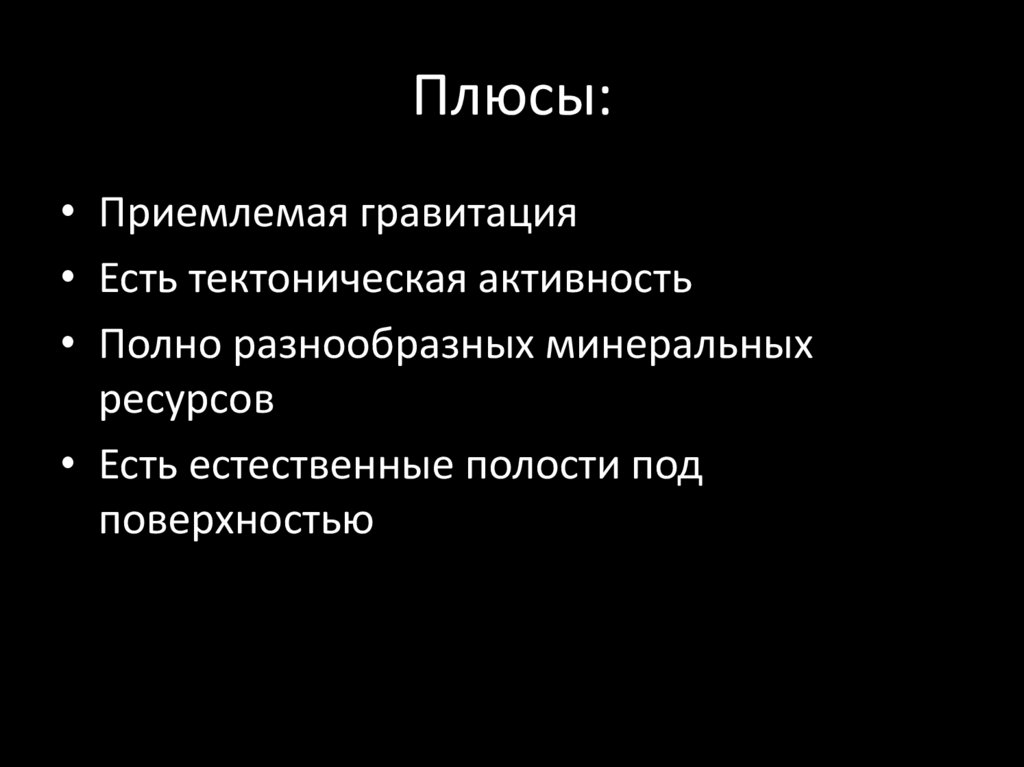 Плюсы:Терраформация вполне возможна