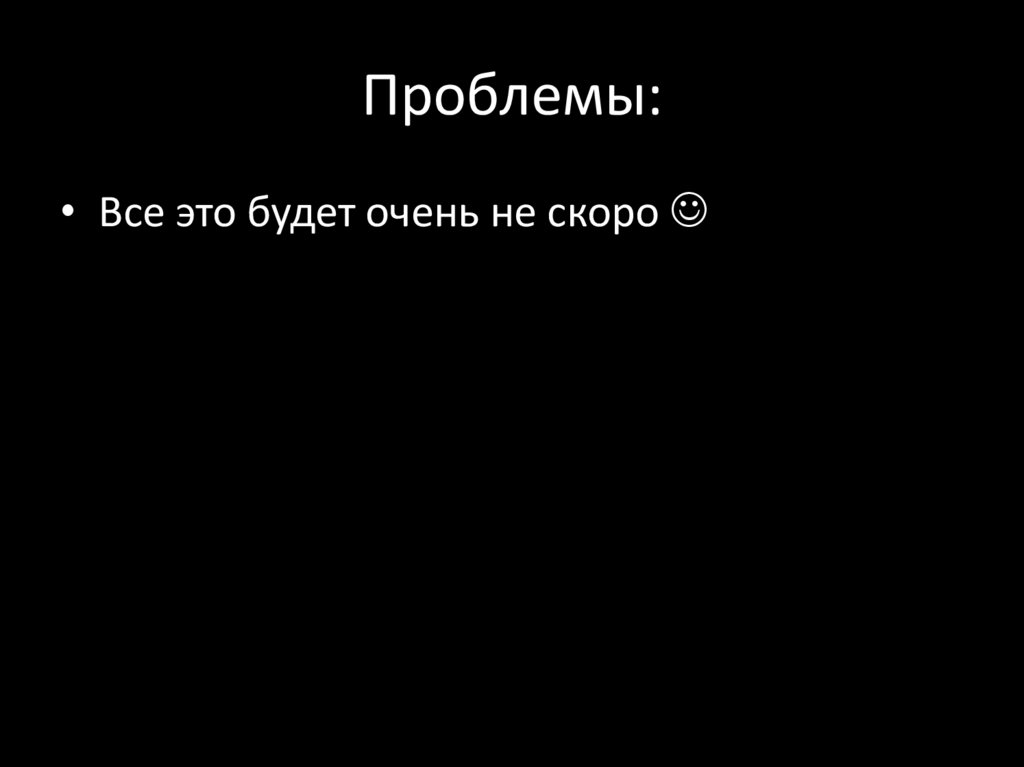 Проблемы:• Все это будет очень не скоро