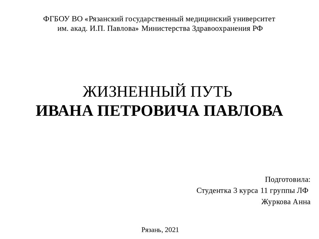 Жизненный путь Ивана Петровича Павлова