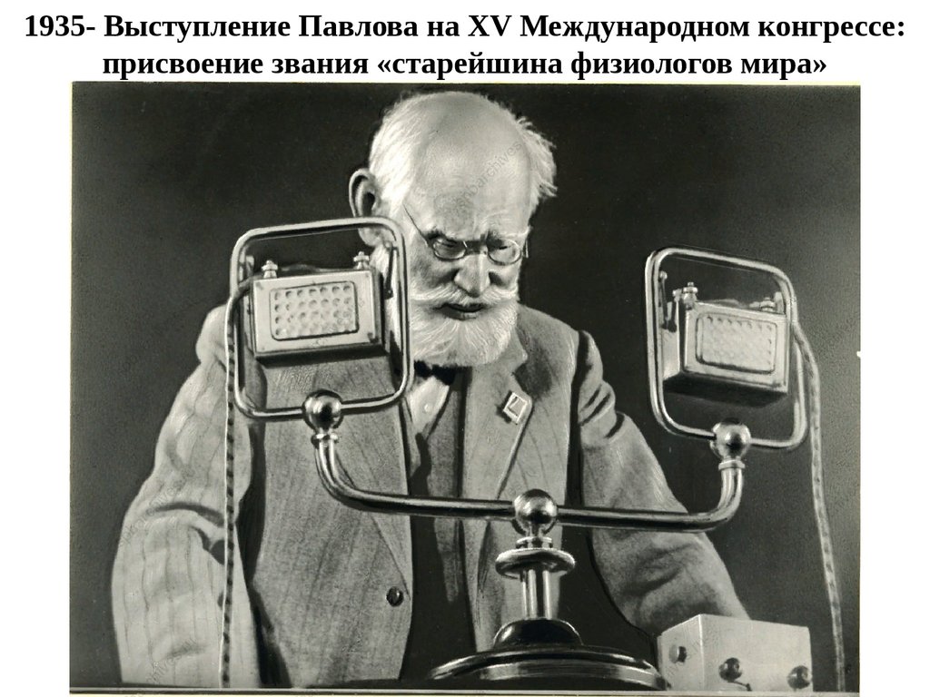 1935- Выступление Павлова на XV Международном конгрессе:присвоение звания «старейшина физиологов мира»
