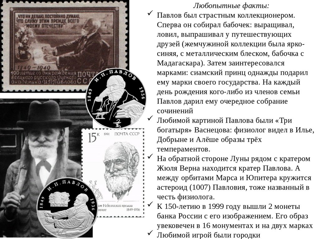 Любопытные факты:Павлов был страстным коллекционером.