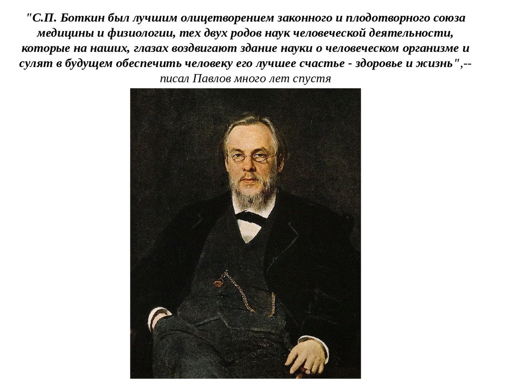 "С.П. Боткин был лучшим олицетворением законного и плодотворного союзамедицины и физиологии, тех двух родов наук человеческой деятельности,