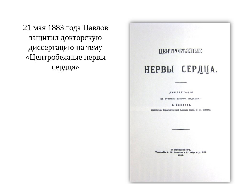 21 мая 1883 года Павловзащитил докторскую