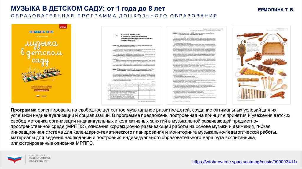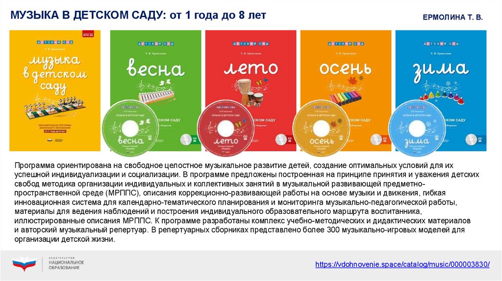 и авторский музыкальный репертуар. В репертуарных сборниках представлено более 300 музыкально-игровых моделей для