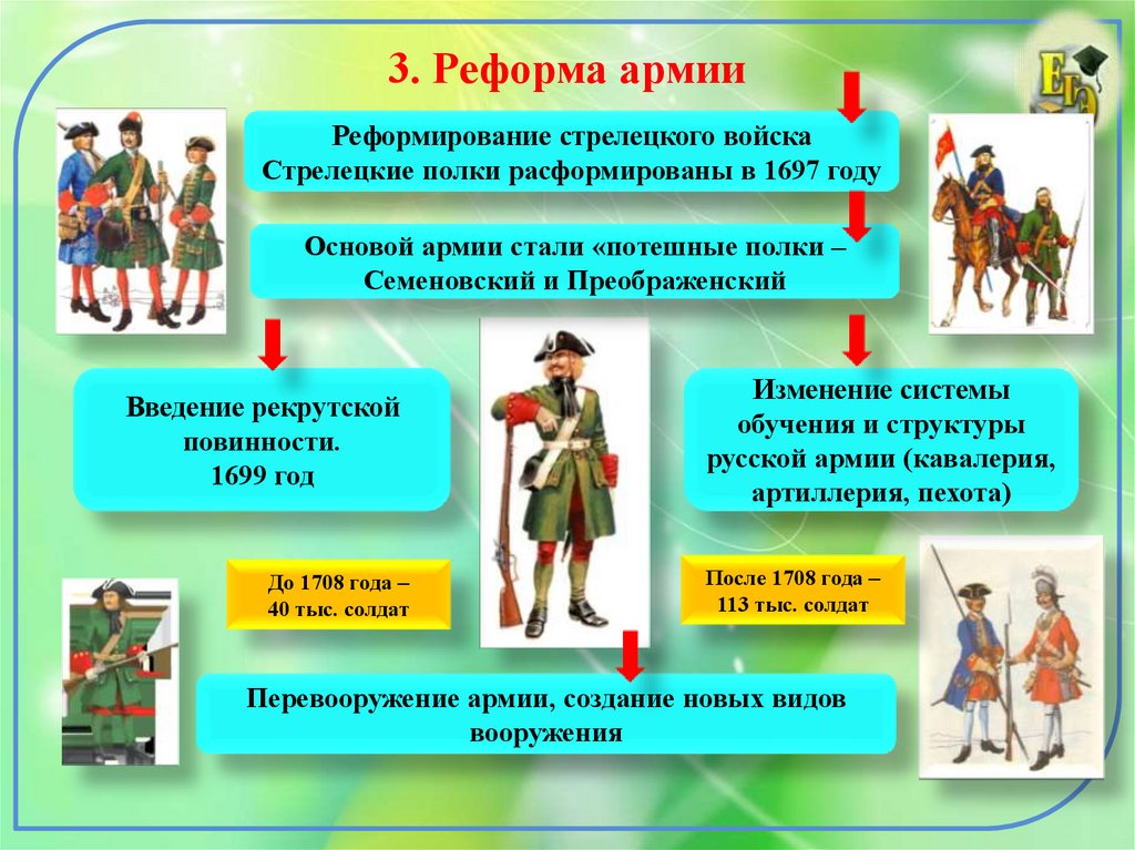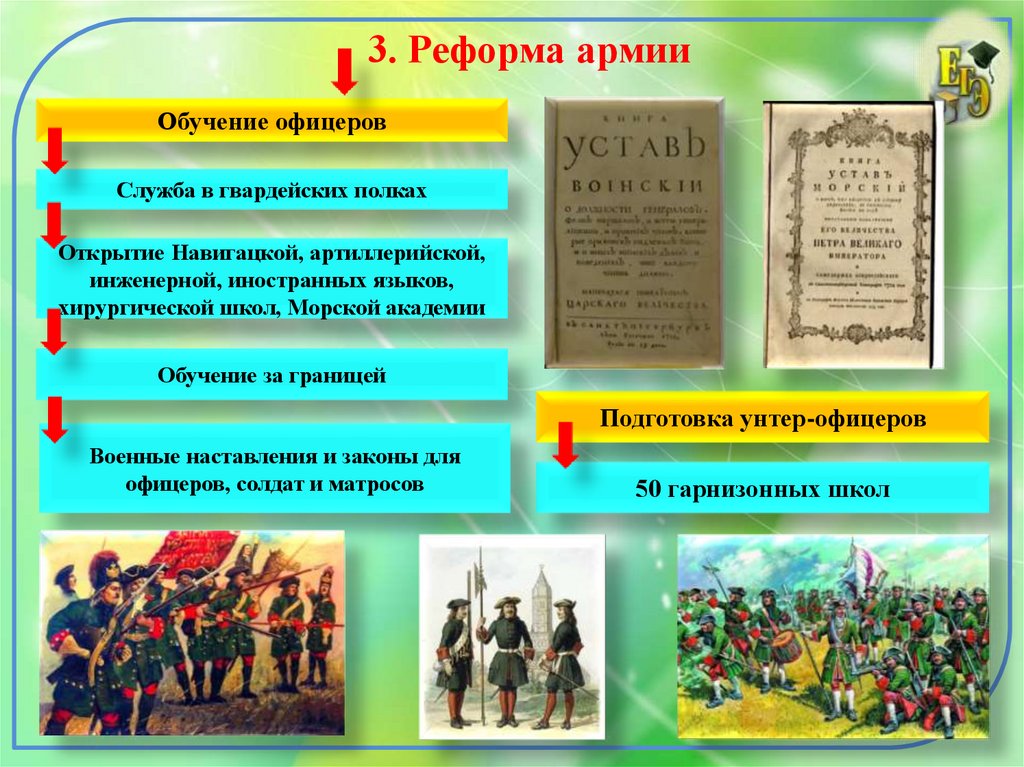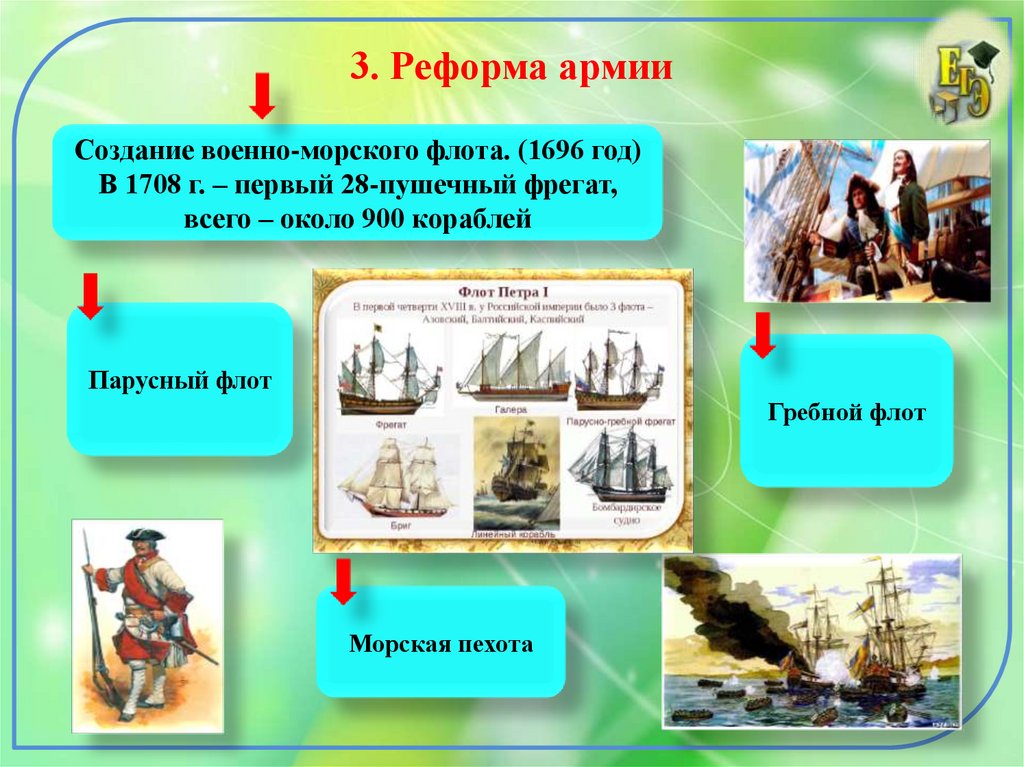 3. Реформа армииСоздание военно-морского флота. (1696 год)